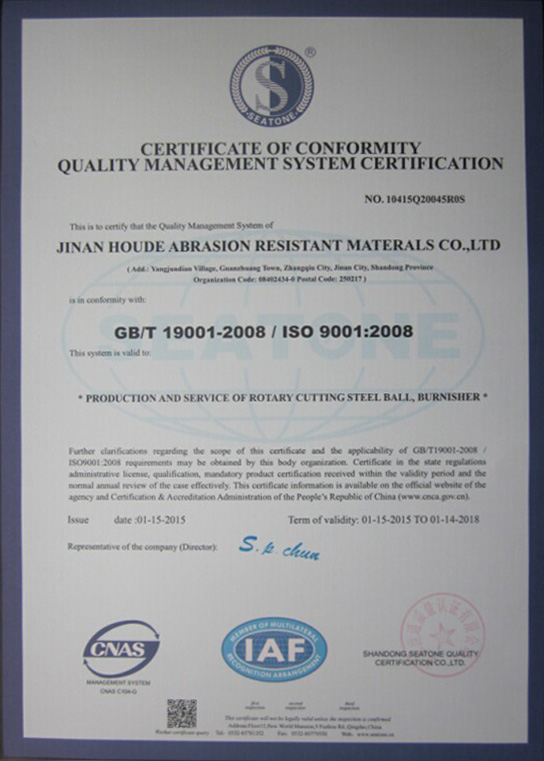 濟南厚德耐磨材料有限公司坐落于風景秀麗的山東章丘,毗鄰309國道,是耐磨鋼棒、耐磨鋼球生產出口廠家之一。公司擁有先進的生產設備,經驗豐富的技術人員,設計生產力年產6萬噸,產品各項性能指標均達到較高水平。公司已榮獲ISO9001-2000國際質量體系認證、IOS14001-2004國際環境體系認證等榮譽。
